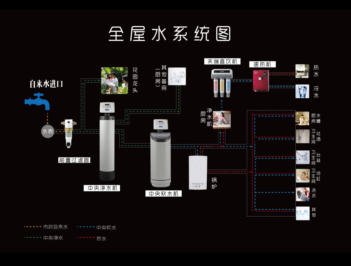 c、 避免管道、閥門、衛浴設備和家用電器中水垢產生,延長使用壽命;d、 避免水中礦物質在潔具、餐具等形成黃斑。