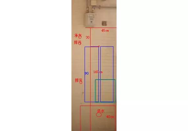 給水電工師傅標出了水管接頭和凈水器實際安裝位置。