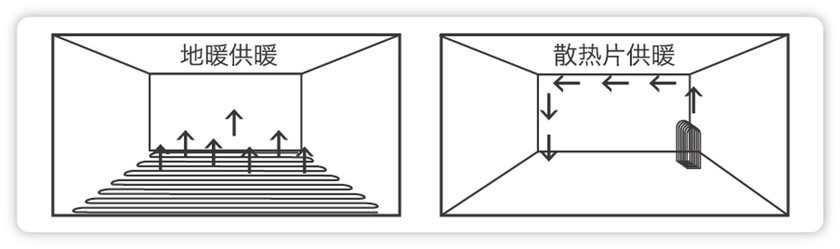 地板輻射采暖主要依靠熱輻射的傳熱方式,因此室溫達(dá)到預(yù)定的時(shí)間要慢一些,但這種散熱方式更符合人體的舒適感受。散熱器系統(tǒng)主要有熱對(duì)流和熱輻射兩種方式,因此它達(dá)到預(yù)定溫度的時(shí)間要快一些。
